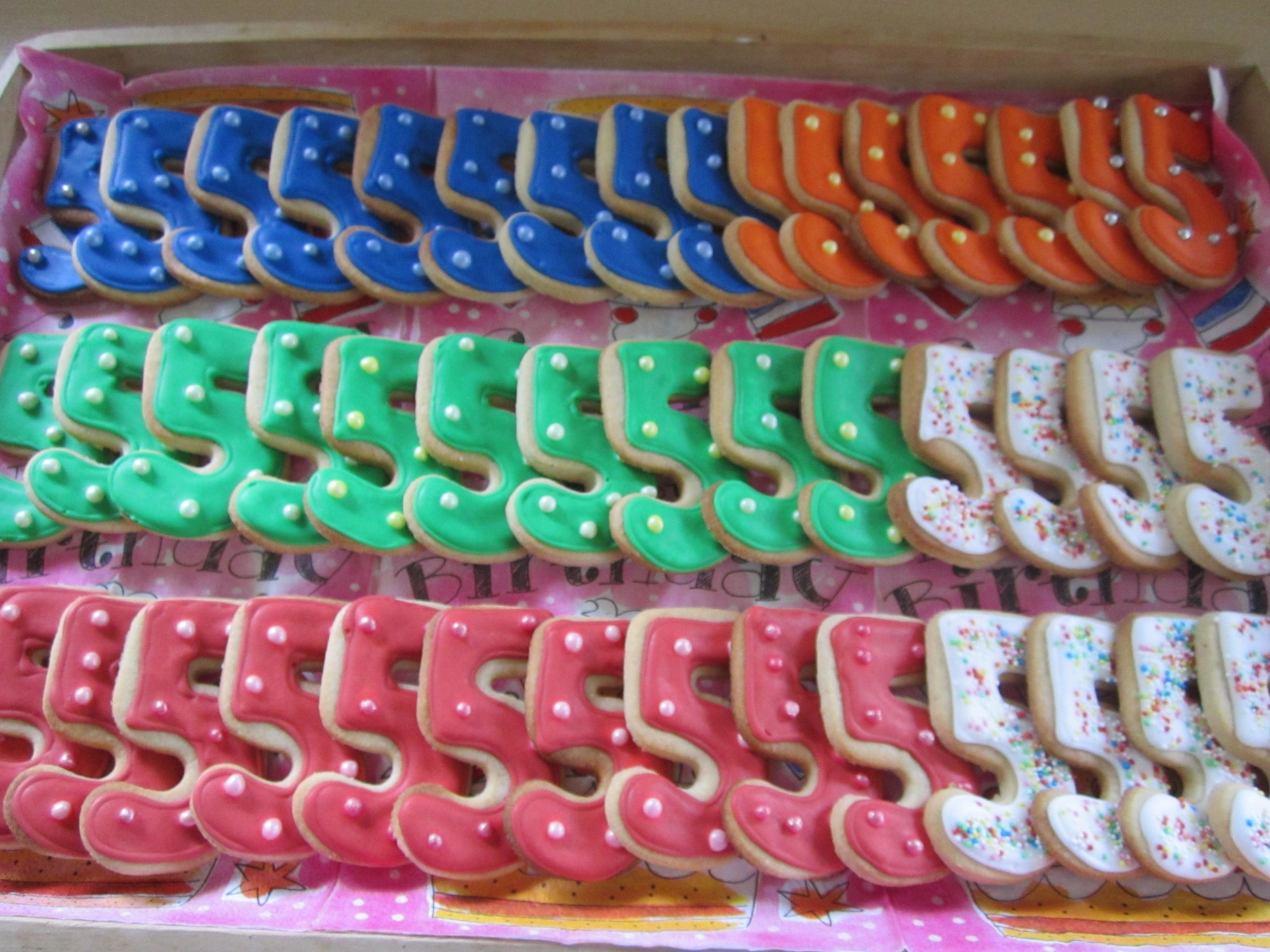 cijfertje 5, gemaakt van koek of cake met daarom glazuur.